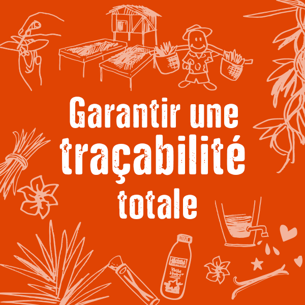 Notre vanille est plantée, bichonnée, récoltée et séchée par les fermiers de la coopérative. Ensuite, elle est délicatement infusée pour se retrouver dans vos recettes préférées. Grâce à un nombre réduit d’intermédiaires et à l’incroyable qualité de leur travail, notre vanille est 100% tracée, de la gousse à la recette. !