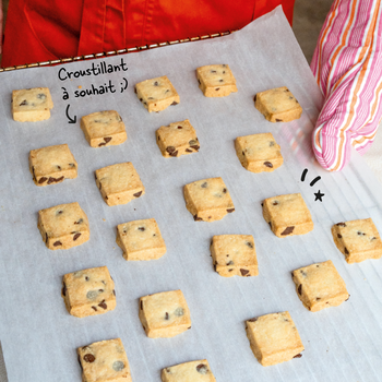 4️⃣ Ensuite, détaillez la pâte en petits carrés presque parfaits ! Déposez vos sablés bien froids sur une plaque recouverte de papier cuisson en pensant à bien les espacer. Enfournez 15 à 20 min ⏰. Sortez les dès qu’ils commencent à blondir et laissez-les refroidir 🌬️.